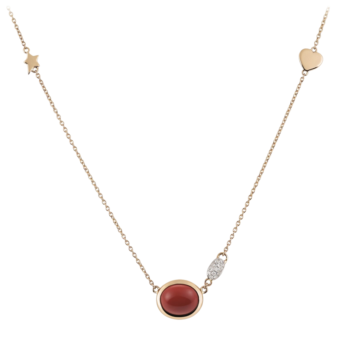 Collier mit Koralle Ref.-Nr.: NC0393COR 750/- Roségold 14 Diamant G – Top Wesselton SI1 Brillant 0,10ct. 1 Koralle rot Cabouchon 2,46ct.