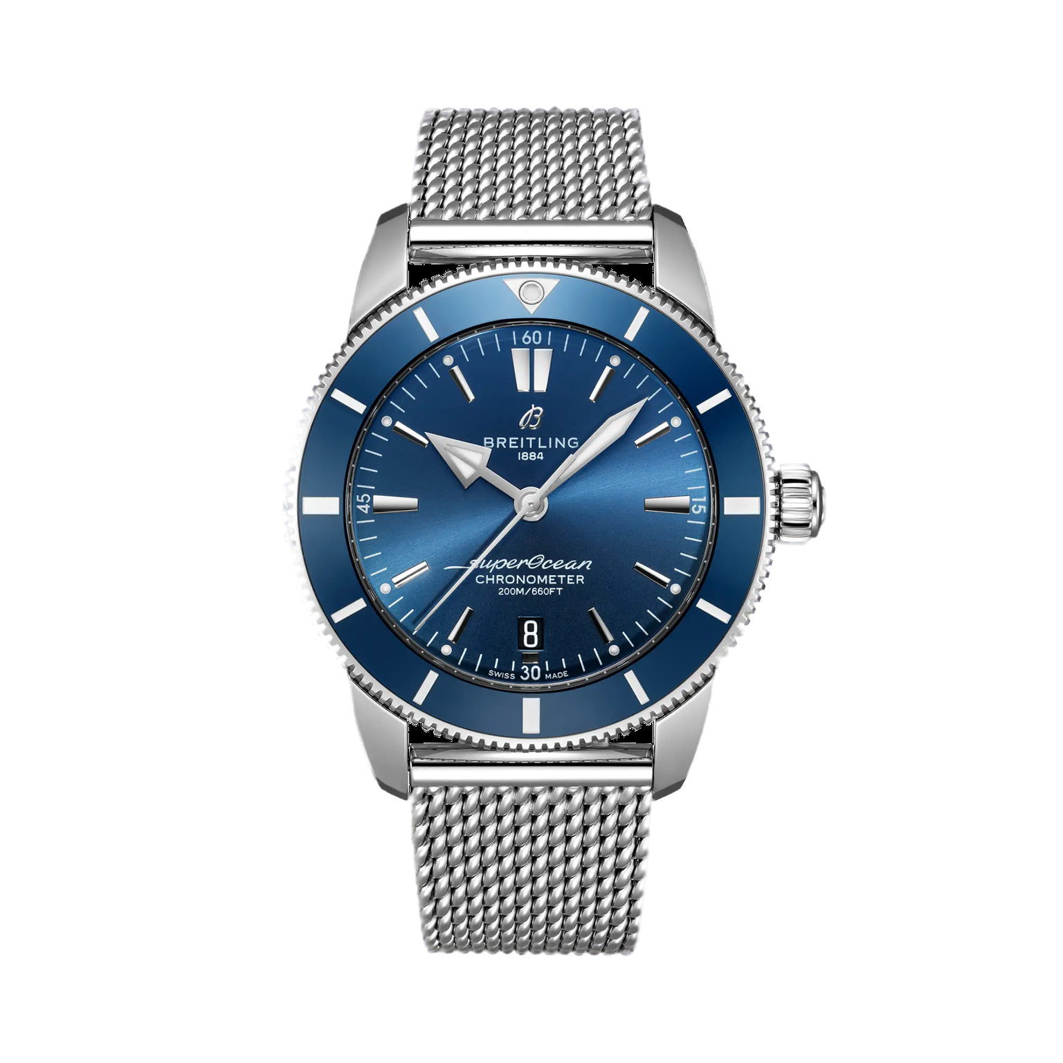 Die Breitling Superocean Heritage B20 Automatic 44 vereint klassisches Design mit moderner Funktionalität. Inspiriert von den legendären Taucheruhren der 1950er Jahre, beeindruckt dieses Modell mit einem 44-mm-Edelstahlgehäuse und einer markanten blauen Keramiklünette. Das strukturierte blaue Zifferblatt sorgt für eine harmonische Optik und beste Ablesbarkeit. Angetrieben vom präzisen Breitling-Manufakturkaliber B20, bietet diese Automatikuhr eine Gangreserve von ca. 70 Stunden und höchste Zuverlässigkeit perfekt für stilbewusste Abenteurer. Die Wasserdichtigkeit bis 200 Meter macht sie zu einem idealen Begleiter für Taucher und Wassersportler. Das blaue Kautschukband verleiht ihr einen Hauch von Vintage-Flair und sorgt für höchsten Tragekomfort. Erleben Sie Schweizer Uhrmacherkunst in Perfektion die Superocean Heritage B20 Automatic 44 ist ein Ausdruck von Stil, Präzision und Abenteuerlust. Erhältlich bei Juwelier Uhren-Seilnacht in Freiburg.