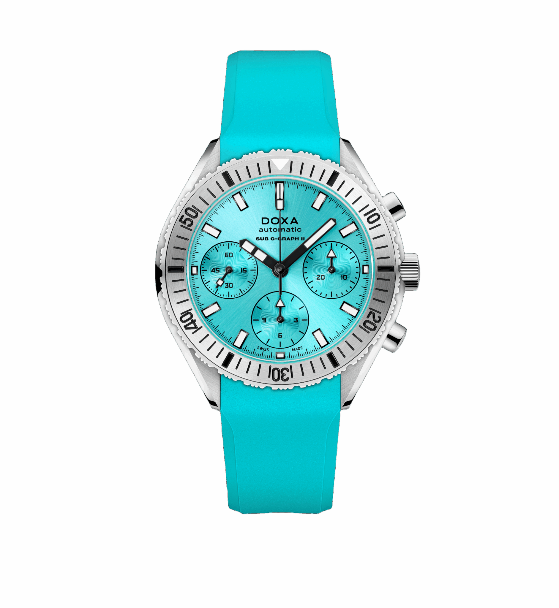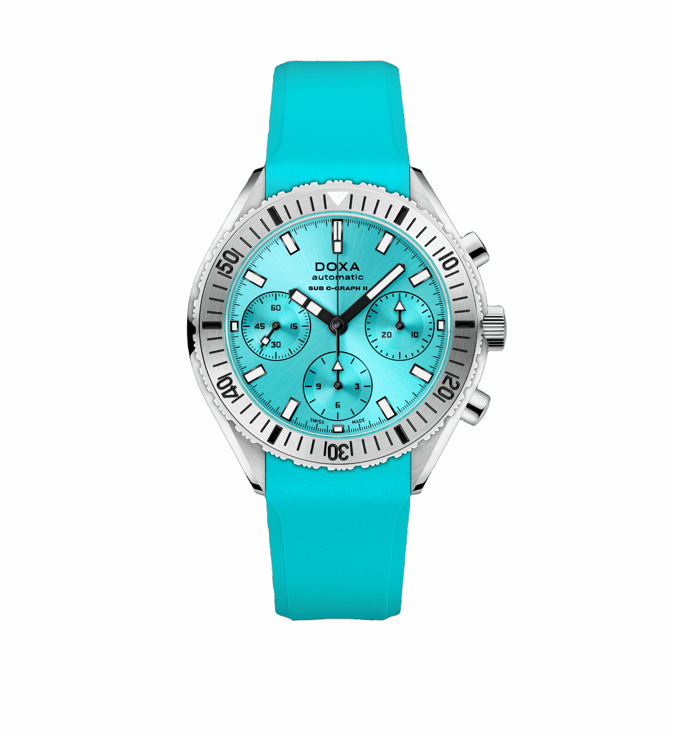 Getragen wird die SUB 200 C-GRAPH II Aquamarine an einem farblich abgestimmten Kautschukband mit Edelstahl-Faltschließe ein sportlich-frisches Statement fürs Handgelenk.