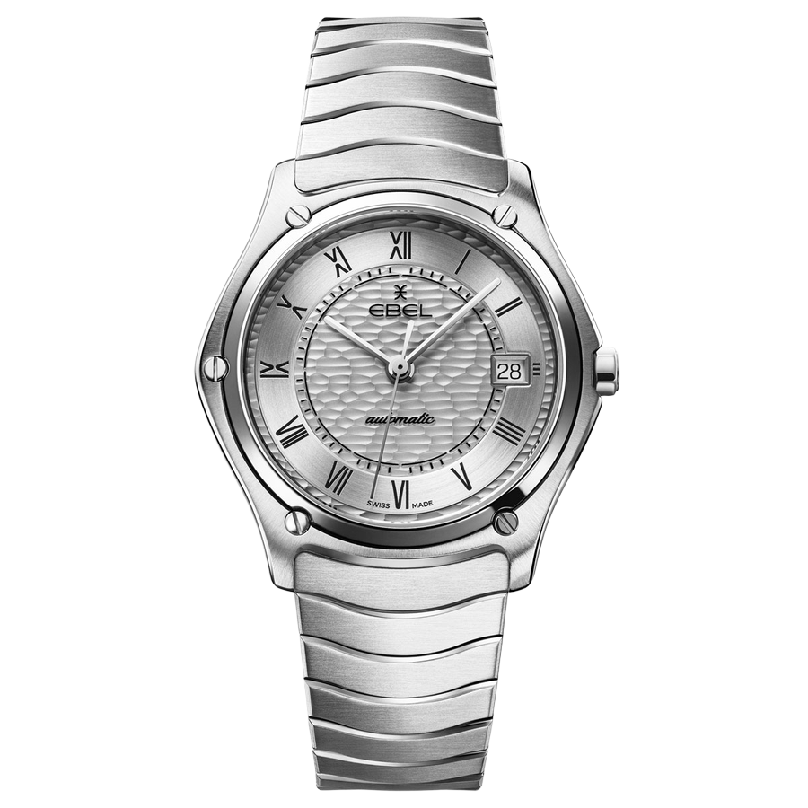 Die Ebel Sport?Classic 37?mm (Ref.?1216708) besticht durch ihr harmonisches Zusammenspiel aus sportlich-eleganter Silhouette und luxuriösen Details. Das Edelstahlgehäuse mit angenehmer Größe von 37?mm strahlt klare Eleganz aus, während die ikonische Wellenarmbandstruktur für hohen Tragekomfort und eine fließende Linienführung sorgt.
