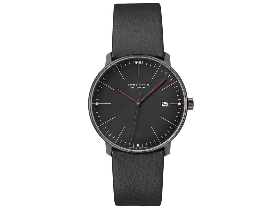 Die Bauhaus-Modelle der Linie max bill zeichnen sich durch ihr minimalistisches Design mit markanten roten Akzenten aus, inspiriert von den roten Türen des Bauhaus-Gebäudes in Dessau, die Max Bill bei seinem ersten Besuch sofort auffielen. Diese farblichen Details verleihen den Uhren eine besondere Verbindung zur Bauhaus-Architektur. Auf der Rückseite des Gehäuses ermöglicht ein Fenster, das die Silhouette des Bauhaus-Gebäudes abbildet, einen Blick auf das mechanische Werk im Inneren. So verbindet sich funktionale Ästhetik mit kunstvoller Handwerkskunst. Erhältlich bei Juwelier Matthias Lewalter in Freiburg.