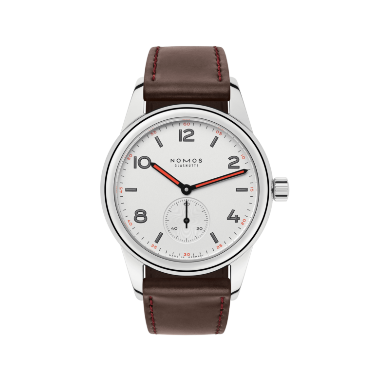 Das braune Horween-Lederband mit roten Nähten und Dornschließe rundet den charakterstarken Gesamteindruck ab. Die NOMOS Club Ref. 701.1 ist somit ein zuverlässiger, tragbarer Klassiker, der durch seine Aufgeräumtheit, Funktionalität und Liebe zum Detail überzeugt.