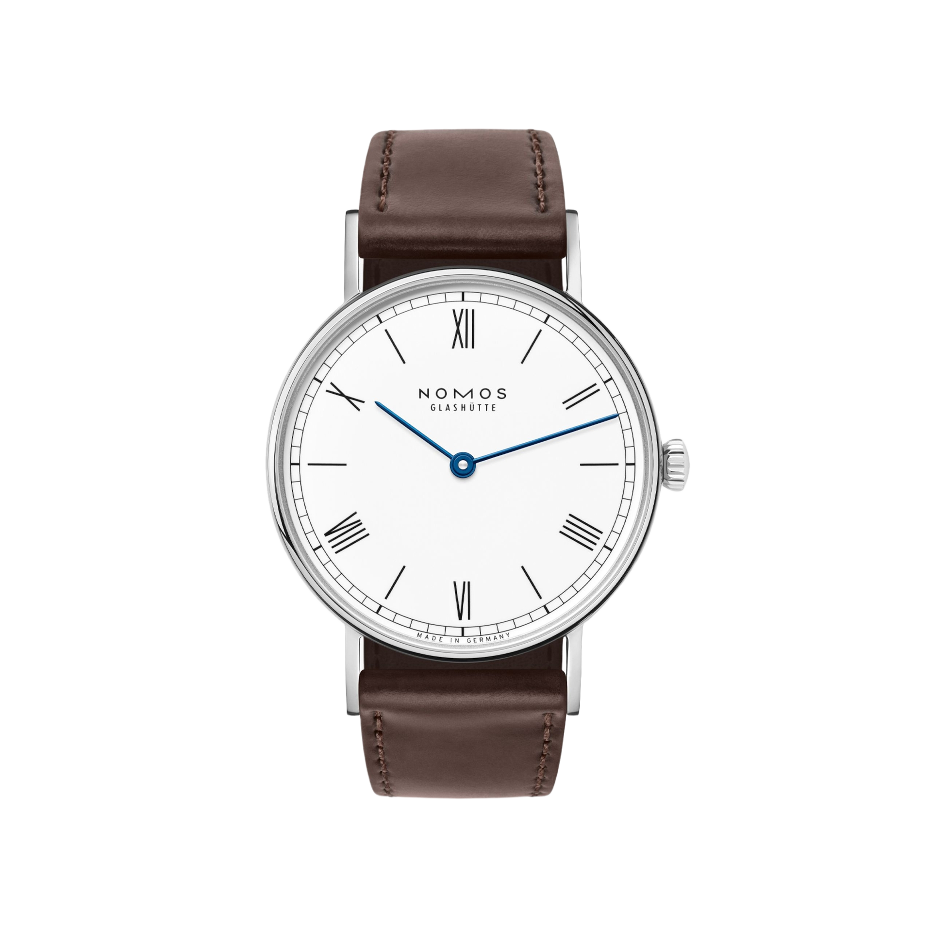 Erhältlich bei Matthias Lewalter in Freiburg: Die NOMOS Ludwig 33 Duo Emailleweiß (Ref.?242) ist eine dezent-elegante Dresswatch im klassischen Stil durch das 33?mm flankenschmale Edelstahlgehäuse (Höhe 6,5?mm) wirkt sie besonders zierlich und elegant, ideal auch für feine Handgelenke .
