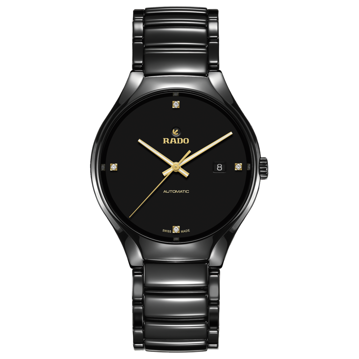 Erhältlich bei Juwelier Seilnacht in Freiburg: Die Rado True Automatic Diamonds ist eine elegante Uhr, die modernes Design mit traditioneller Uhrmacherkunst verbindet. Das 40-mm-Gehäuse und das Armband bestehen aus Hightech-Keramik, die für ihren dauerhaften Glanz, ihre Leichtigkeit und ihren hohen Tragekomfort bekannt ist. Angetrieben von einem hochwertigen Schweizer Automatikwerk, bietet die Uhr eine Gangreserve von bis zu 80 Stunden. Das schwarze Zifferblatt ist mit 12 Diamanten besetzt, die als Stundenindizes fungieren und der Uhr einen Hauch von Luxus verleihen. Mit einer Wasserdichtigkeit von bis zu 5 bar (50 Meter) ist die Rado True Automatic Diamonds sowohl für den täglichen Gebrauch als auch für besondere Anlässe geeignet.