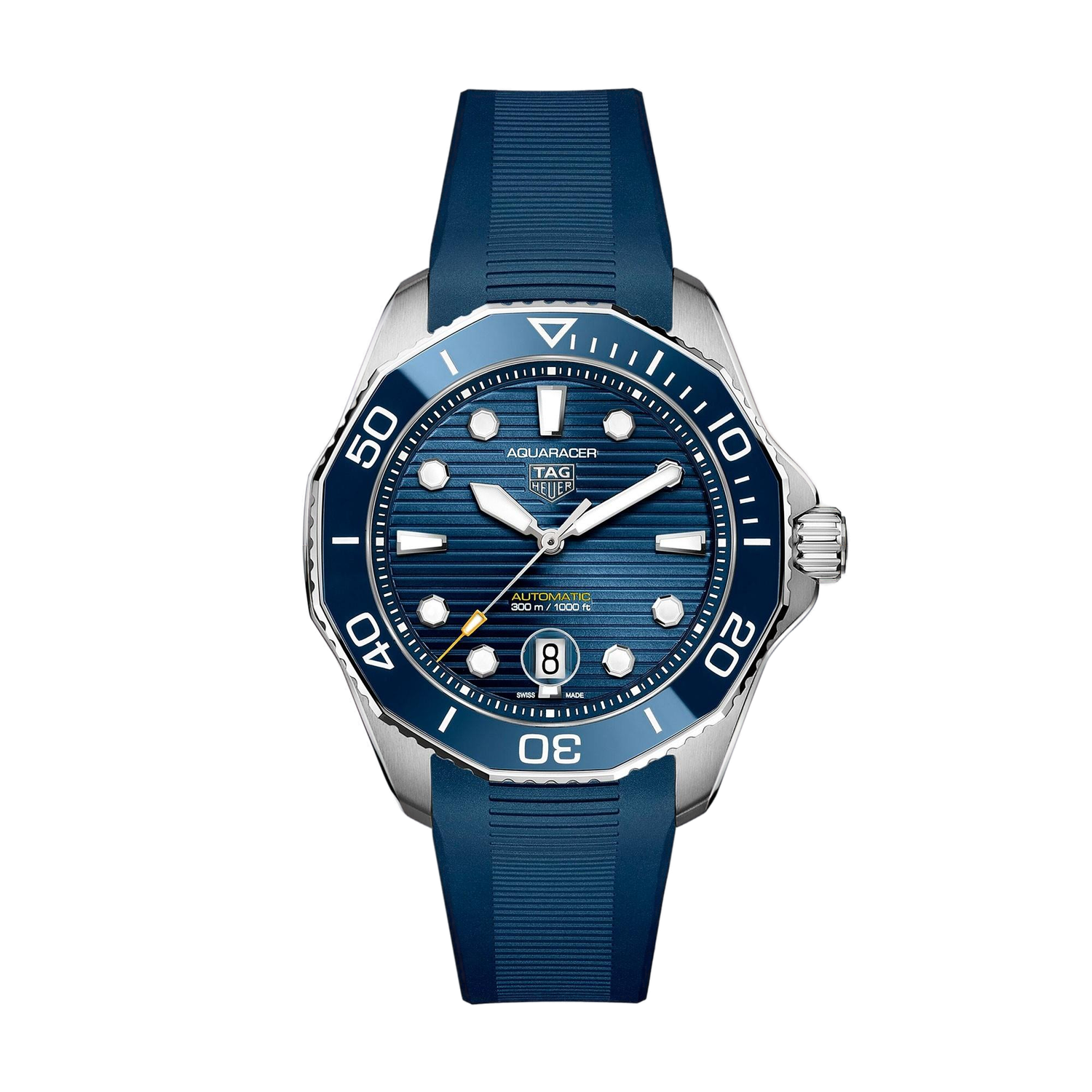 Erhältlich bei Juwelier Seilnacht in Freiburg: Die TAG Heuer Aquaracer Professional 300 Date Automatik 43 mm ist ein herausragender Zeitmesser, der Leistung und Stil vereint. Angetrieben vom automatischen Calibre 5, verfügt sie über ein strahlend blaues Zifferblatt mit Sonnenstrahleneffekt, das perfekt mit dem blauen Kautschukarmband harmoniert und höchsten Tragekomfort bietet.