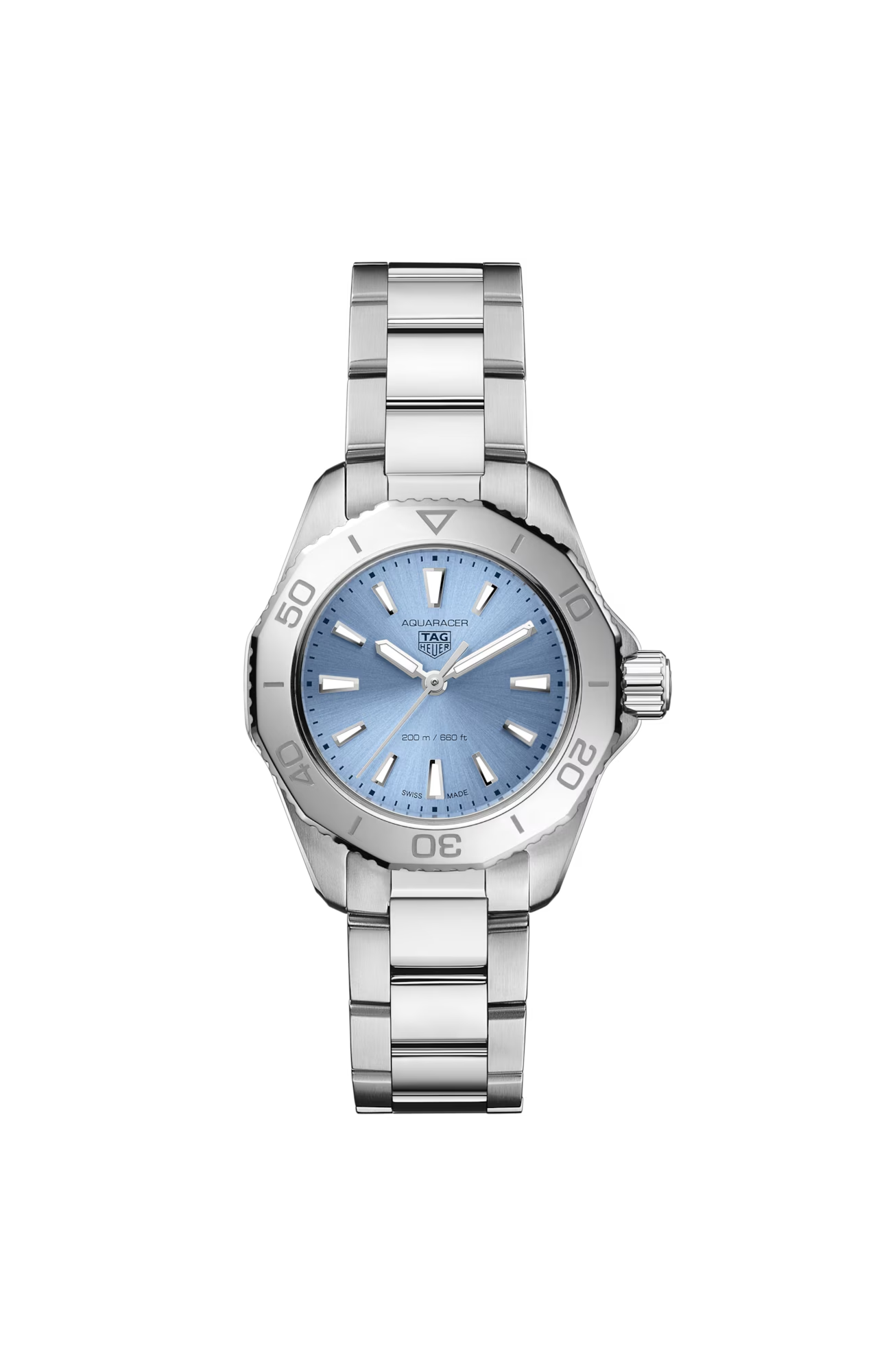 Erhältlich bei Juwelier Seilnacht in Freiburg: Die TAG Heuer Aquaracer Professional 200 Quarz 30 mm vereint sportliche Eleganz mit technischer Präzision. Das 30-mm-Edelstahlgehäuse mit einseitig drehbarer Lünette und das hellblaue Zifferblatt mit Sonnenstrahleneffekt verleihen der Uhr eine frische und dynamische Ausstrahlung. Angetrieben von einem zuverlässigen Quarzwerk, bietet sie höchste Genauigkeit und ist bis 200 Meter wasserdicht.