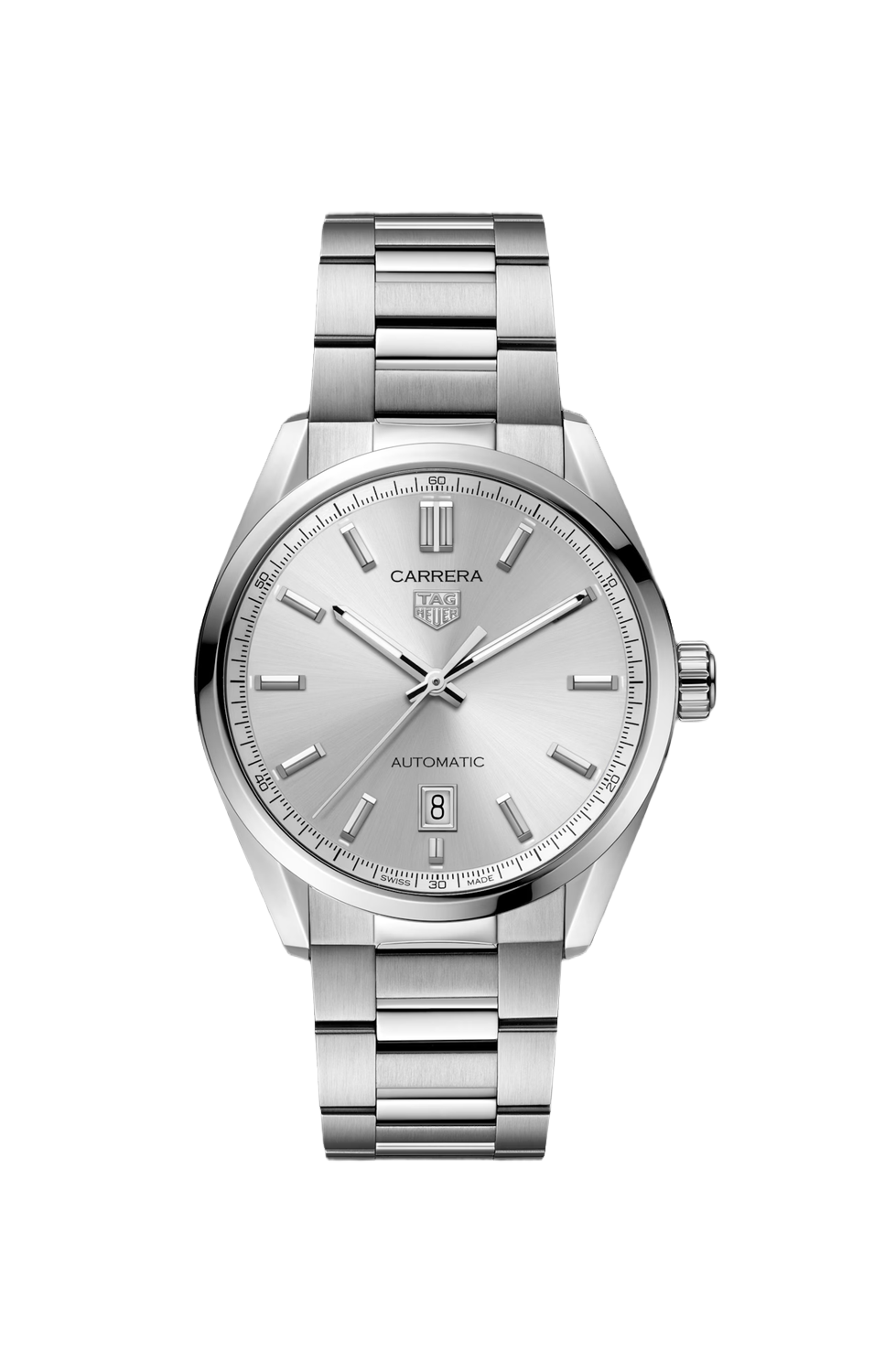 Erhältlich bei Juwelier Seilnacht in Freiburg: Die Carrera Date 39 mm (Ref. WBN2111.BA0639) ist eine elegante Swiss-Made-Automatikuhr, die klassische Formensprache mit moderner Technik verbindet. Ihr Gehäuse aus Edelstahl misst 39 mm im Durchmesser und ist mit einem entspiegelten Saphirglas ausgestattet sowie bis 100 Meter wasserdicht.