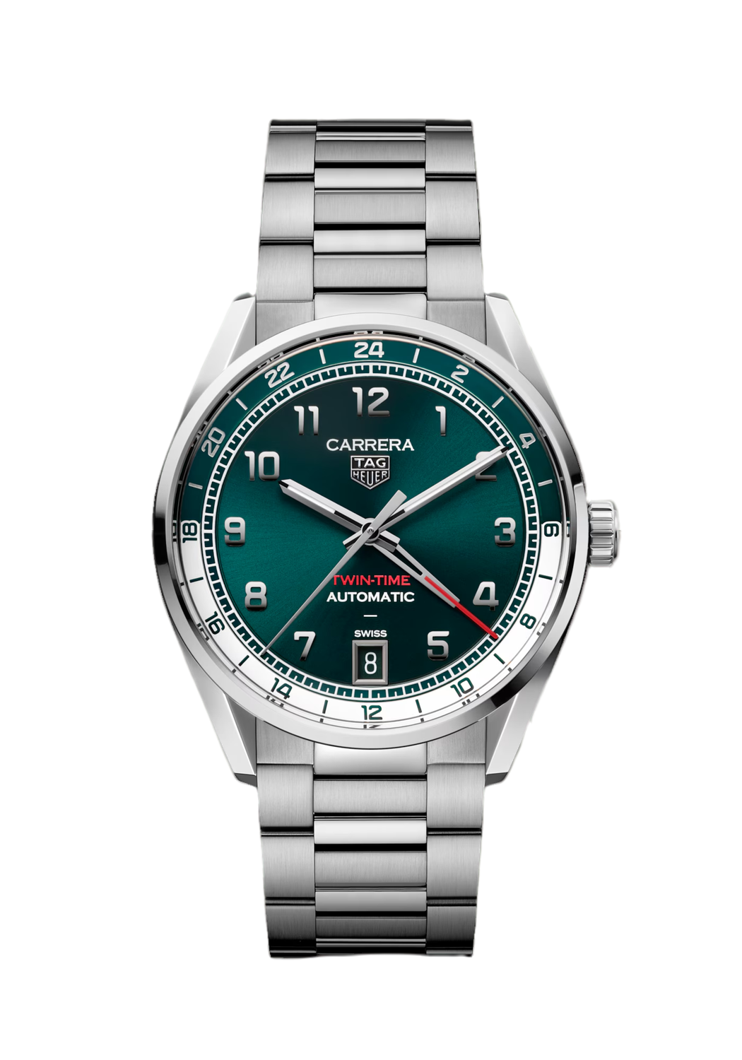 Erhältlich bei Juwelier Seilnacht in Freiburg: Die TAG Heuer Carrera Date Twin-Time (Ref. WDA2114.BA0043) kombiniert klassische Ästhetik mit moderner Funktionalität. Das 41 mm große Edelstahlgehäuse beherbergt ein markantes blaugrünes Zifferblatt mit Sonnenschliff, das durch eine zusätzliche GMT-Zeitzonenanzeige ergänzt wird. Angetrieben vom Manufakturkaliber TH31-03 bietet diese Uhr eine beeindruckende Gangreserve von bis zu 80 Stunden. Die Kombination aus gebürsteten und polierten Oberflächen verleiht der Uhr eine elegante Ausstrahlung, während das Edelstahlarmband mit H-Gliedern für hohen Tragekomfort sorgt. Bitte beachten Sie, dass einzelne Modelle bereits reserviert oder zwischenverkauft sein können. Juwelier Seilnacht steht Ihnen jederzeit für eine persönliche Beratung zur Verfügung.