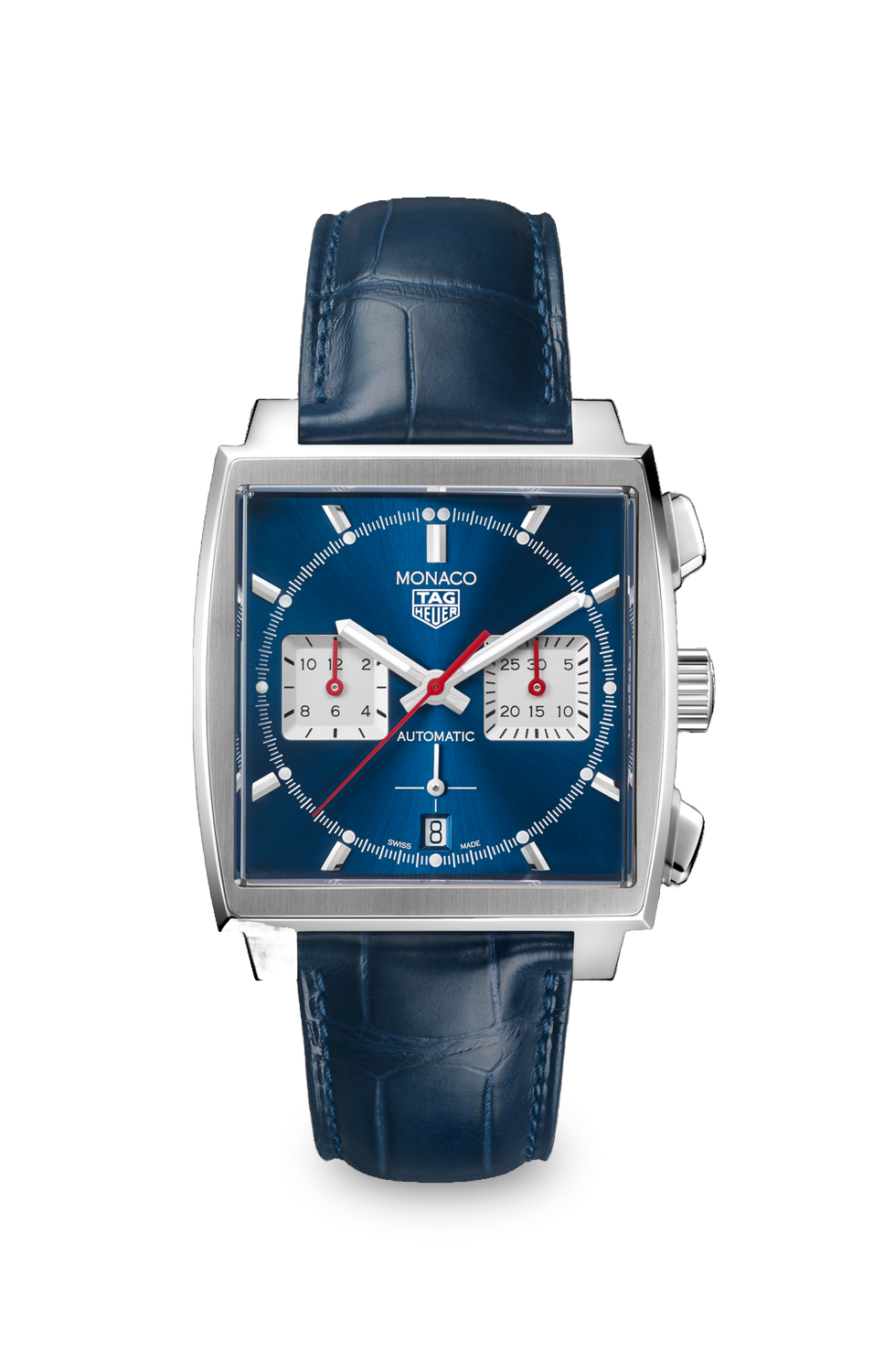 Das blaue Alligatorlederarmband mit Faltschließe aus Edelstahl rundet das elegante Design ab und bietet hohen Tragekomfort. Mit einer Wasserdichtigkeit von bis zu 100 Metern ist die Monaco Chronograph sowohl für den Alltag als auch für besondere Anlässe geeignet.