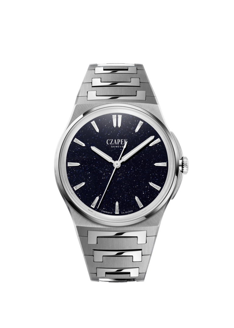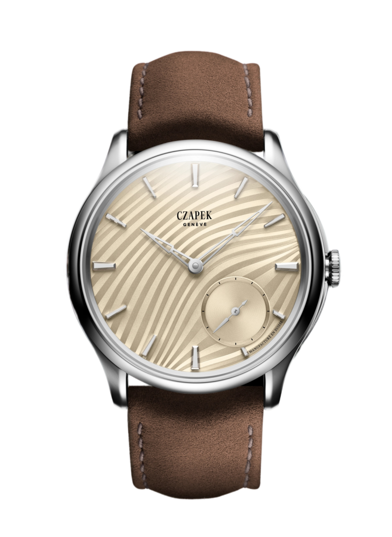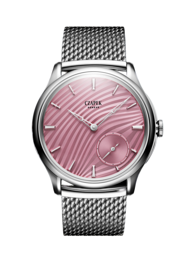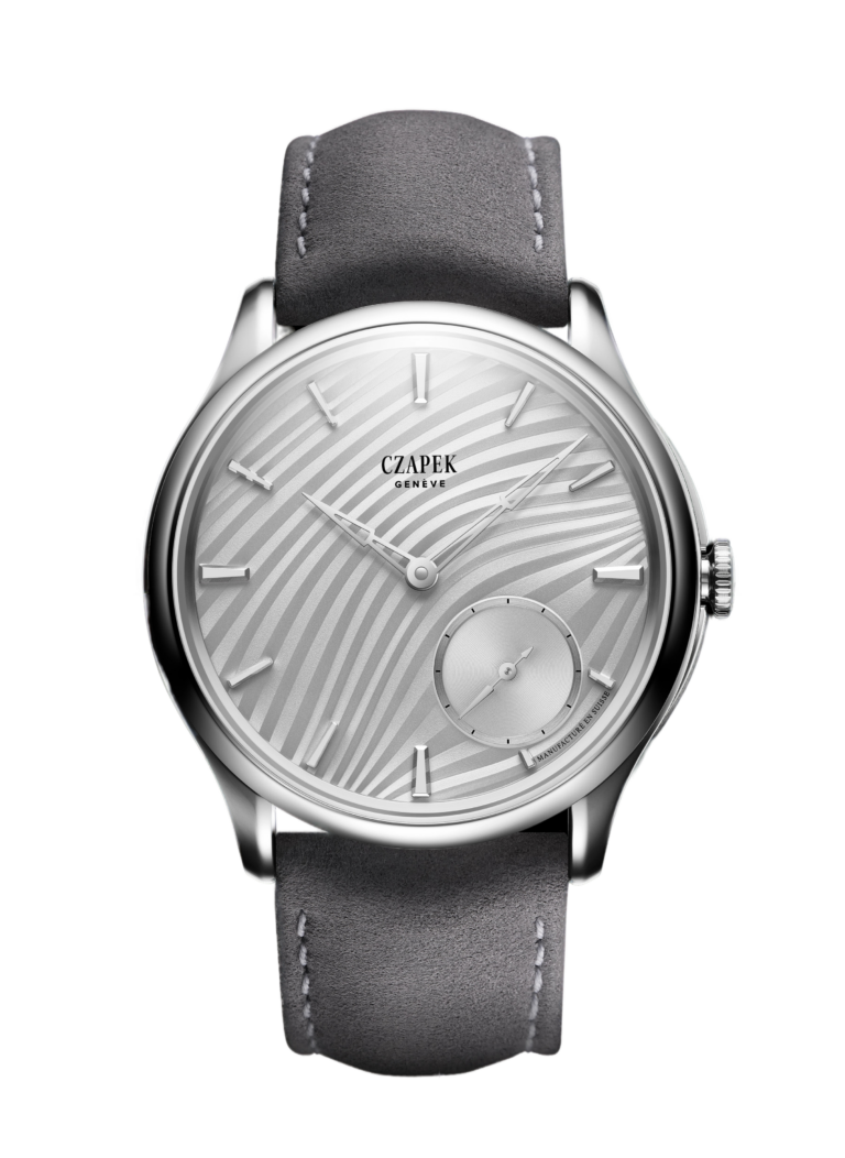 Die Czapek Promenade Kollektion kombiniert traditionelle Uhrmacherkunst mit modernem Design. Die Uhren verfügen über ein 38-mm-Edelstahlgehäuse mit asymmetrischem Zifferblatt, wobei die kleine Sekunde bei 4:30 Uhr positioniert ist. Angetrieben werden sie vom hauseigenen Mikrorotor-Kaliber SXH5.1 mit 60 Stunden Gangreserve. Die Kollektion bietet verschiedene Zifferblattvarianten, darunter das "Goutte d’Eau" mit Grand-Feu-Emaille, das die Illusion von Wasserwellen erzeugt, und das "Guilloché Soleil" mit feinen guillochierten Sonnenstrahlen. Erhältlich sind die Modelle mit Nubuklederarmbändern oder Edelstahl-Milanaise-Armband. Insgesamt steht die Promenade Kollektion für eine gelungene Verbindung von klassischer Eleganz und moderner Kreativität.